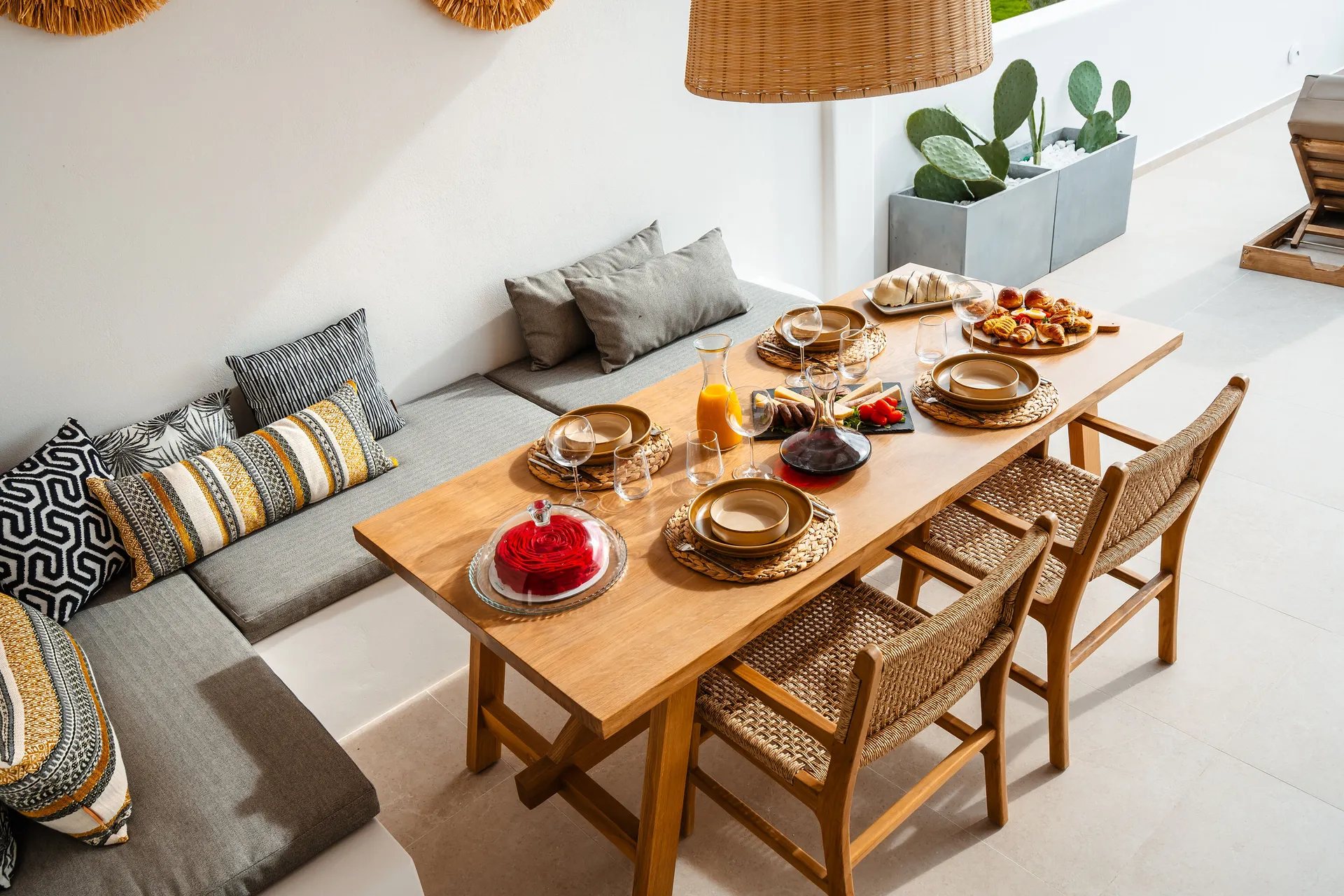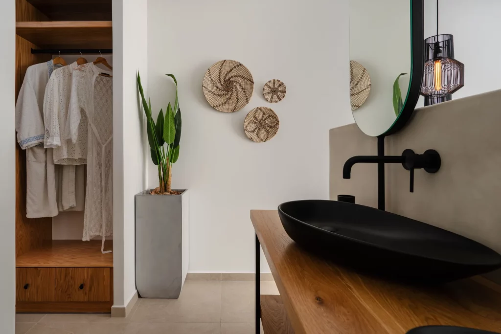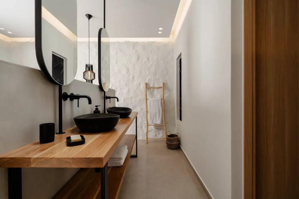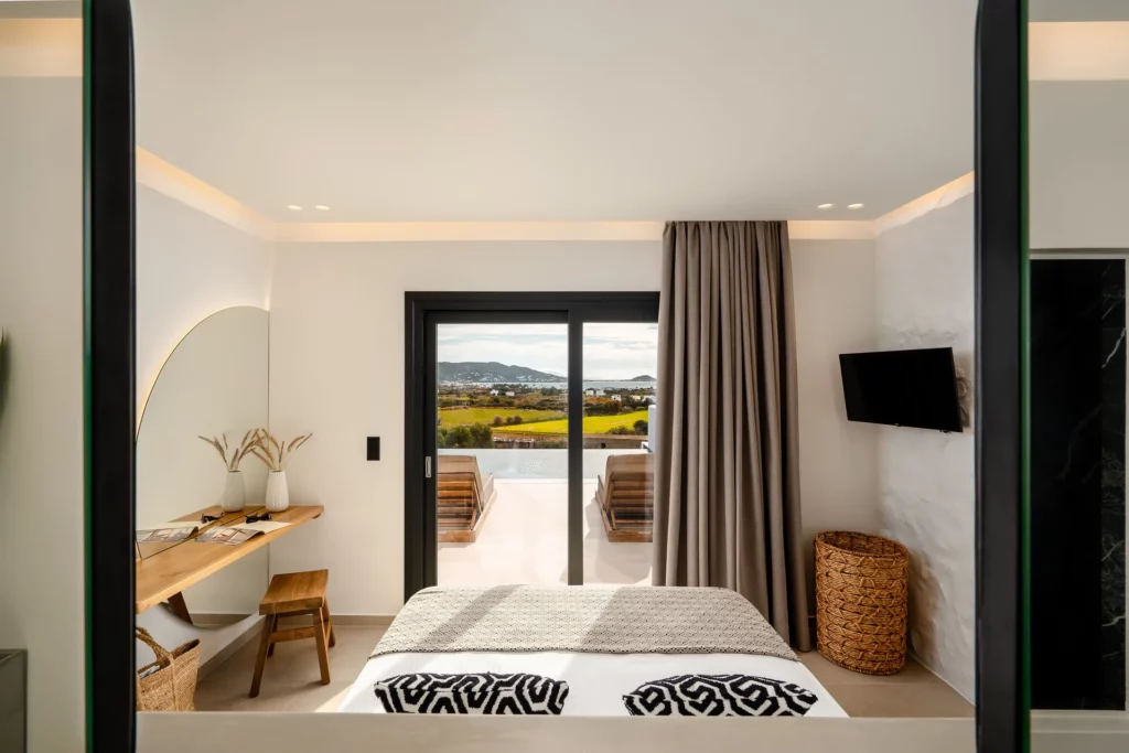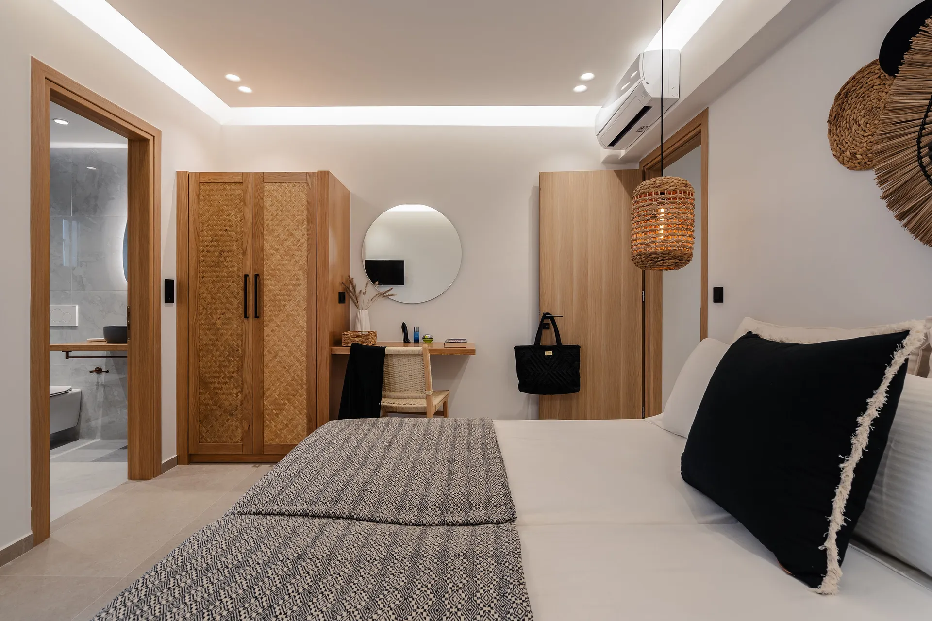 Agia Anna Luxury Villa is a high-end retreat designed in harmony with its natural surroundings. It offers three double bedrooms, each with its own en-suite bathroom, and features a spacious outdoor patio with a wooden pergola, built-in sofa, air conditioning, and a private outdoor pool. Both the pool area and our balconies provide breathtaking views that blend the mountains with the sea.