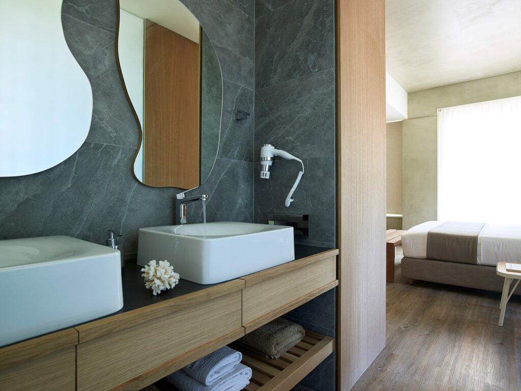 Built using locally sourced Kissamos limestone, the villas were designed by Chania-based architect and designer Rena Mania. Warm, natural tones and materials are combined with soft neutral shades to create elegant, calming interiors, complemented by high-quality furnishings and modern installations throughout. Sustainability is a key feature of the estate, with solar panels and ground-source heat pumps providing eco-friendly energy solutions.