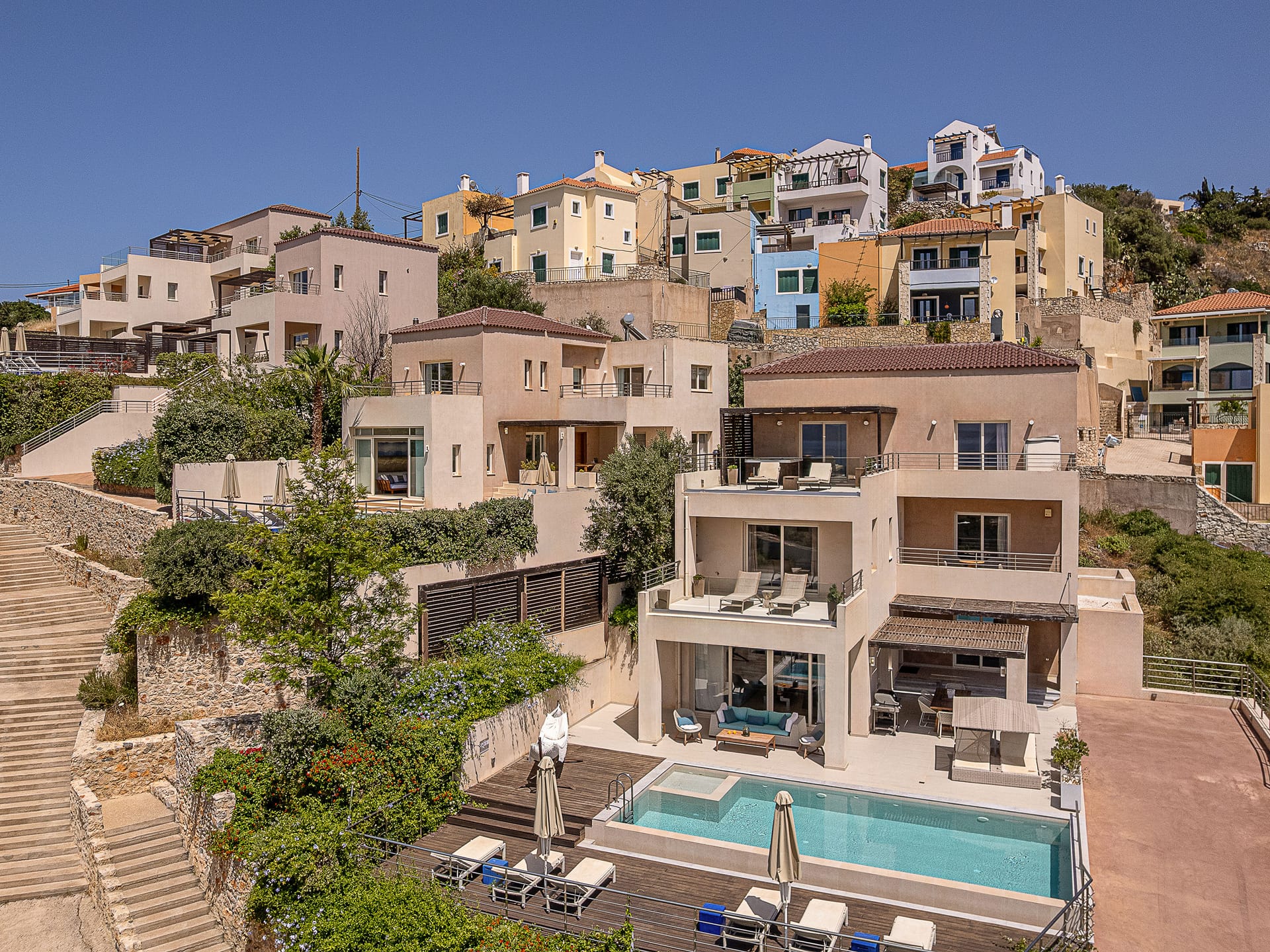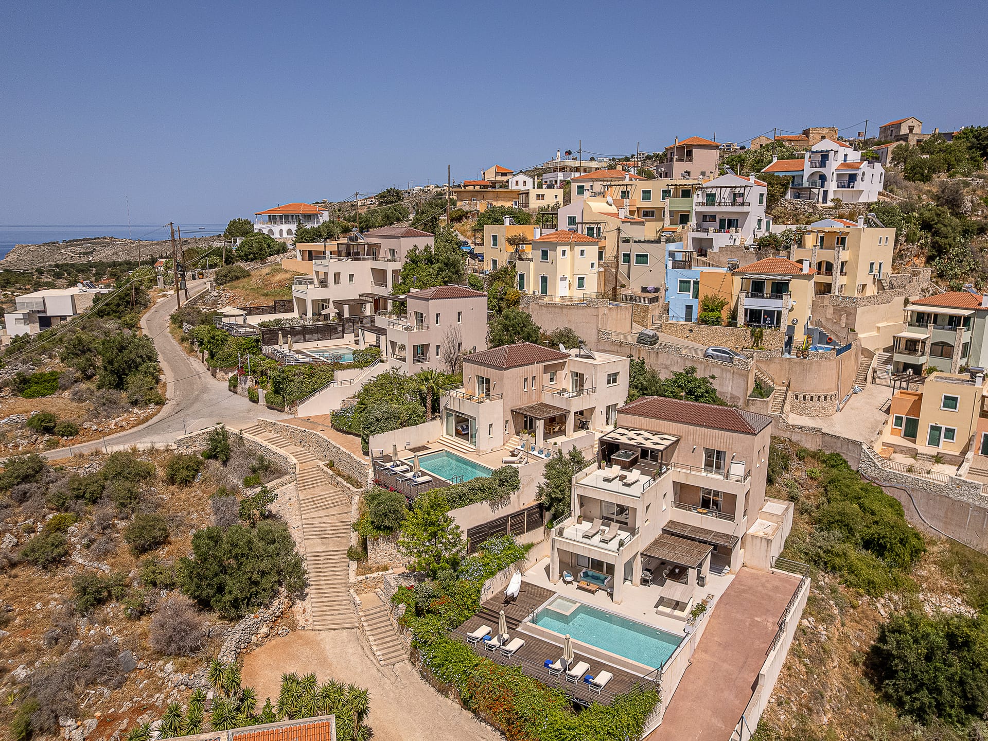Each villa has its own private swimming pool, sun loungers, lounge corners, al fresco dining areas, and BBQ facilities. The estate is just 900 meters from the sea, offering the perfect combination of sun, relaxation, and breathtaking Cretan sunsets.