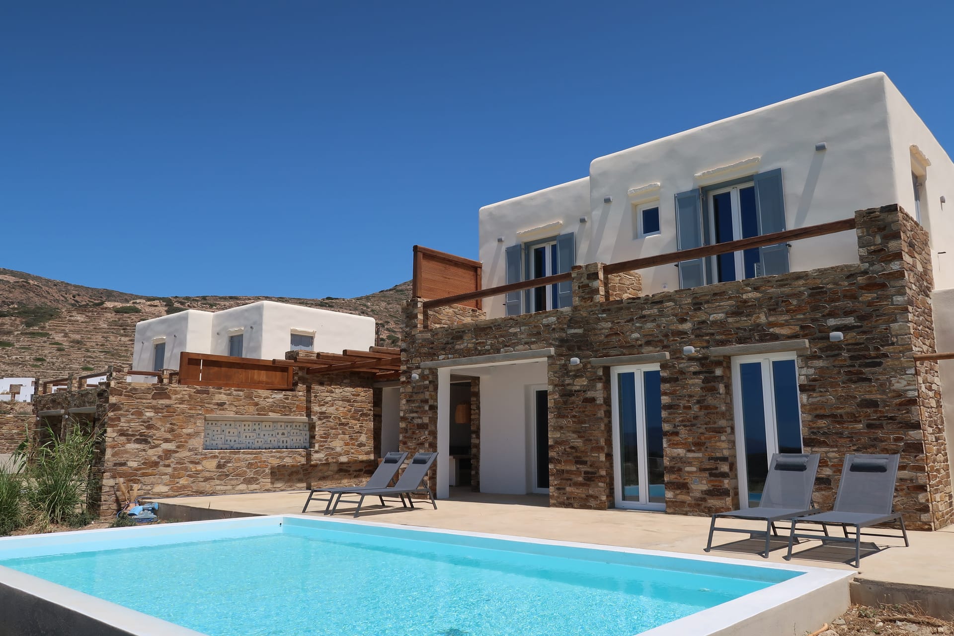 This collection of three newly built villas has been thoughtfully created to offer understated sophistication and timeless Cycladic elegance.
