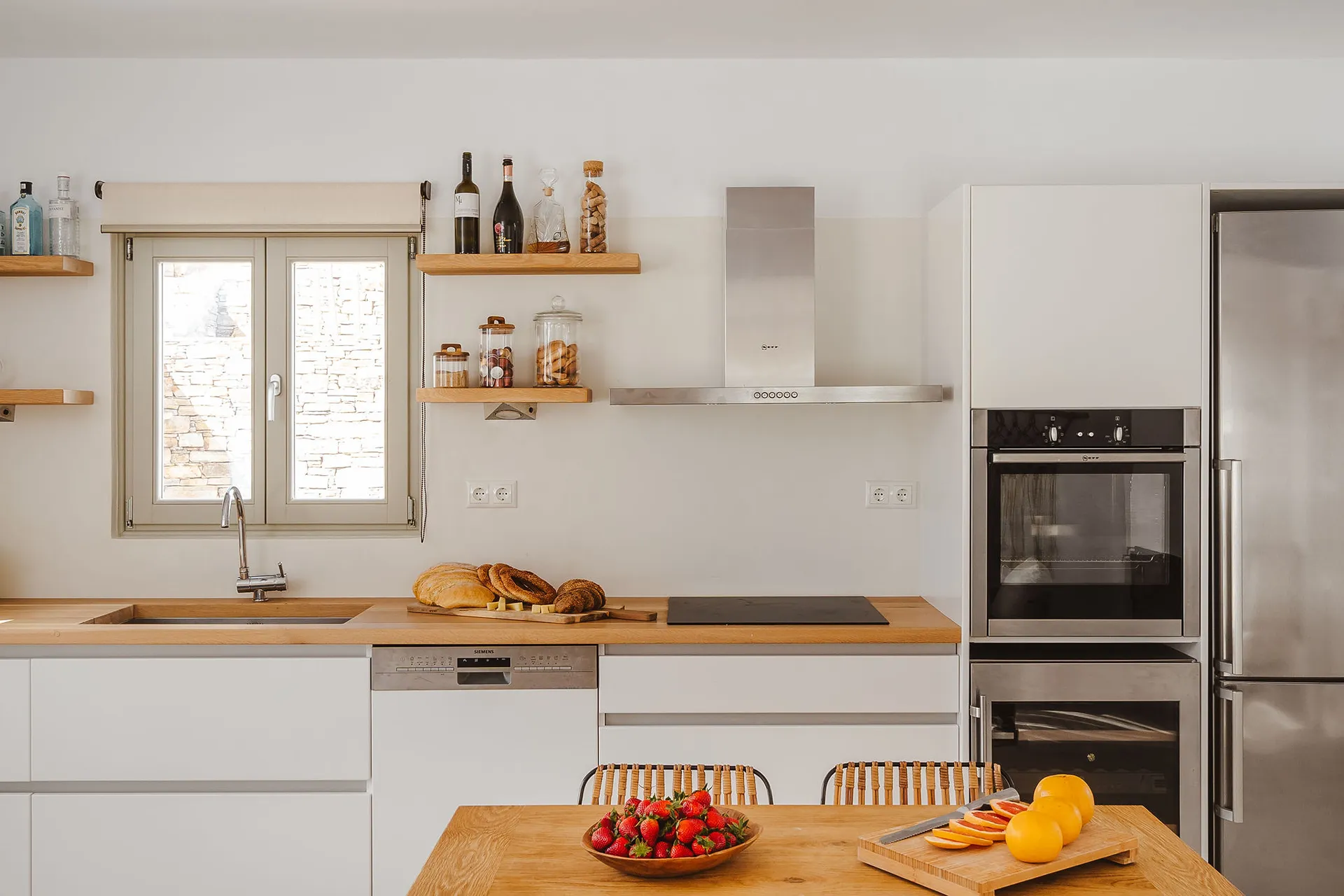 A well-known bakery, supermarket, local tavernas, and a windsurfing club are all within walking distance. For ease of exploration, car or bike rental is recommended.
