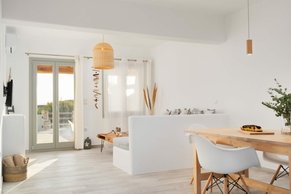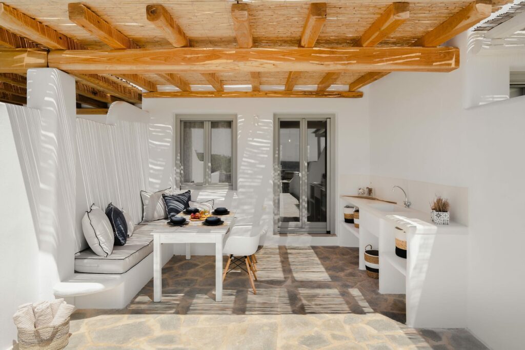 This beautifully renovated two-level villa combines modern comfort with traditional Cycladic charm. Nestled in a private complex of three villas in peaceful Kastraki, it’s just a short drive from the soft sandy beach and crystal-clear waters, ideal for water sports and exploring the area.