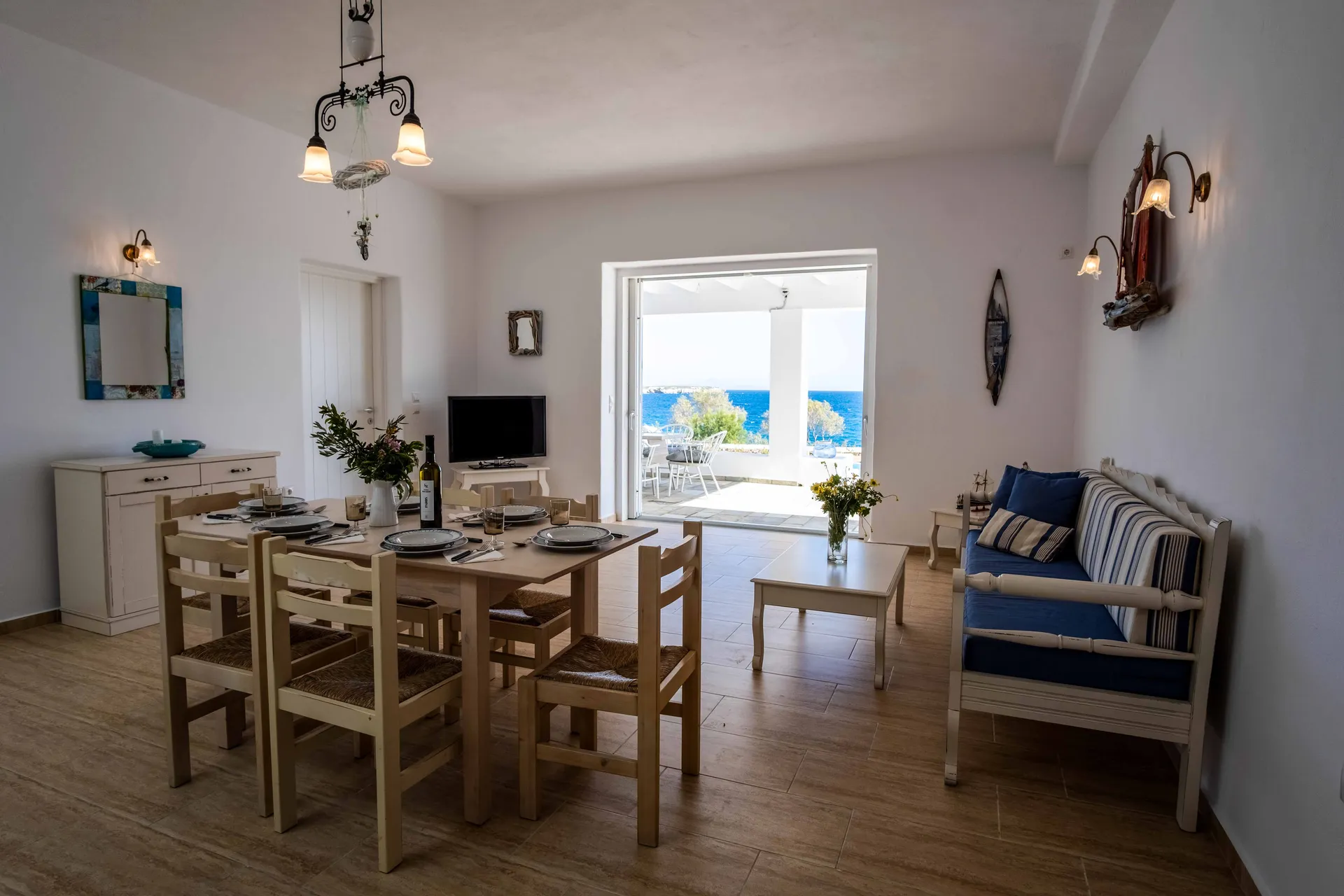 Blanco Azul is a traditional three-bedroom villa, ideal for families or groups of up to seven. Its simple, classic Cycladic style is complemented by a private swimming pool and a wonderful location just steps from a quiet, beautiful beach. It’s also perfectly situated for water sports enthusiasts near the Golden Beach area.