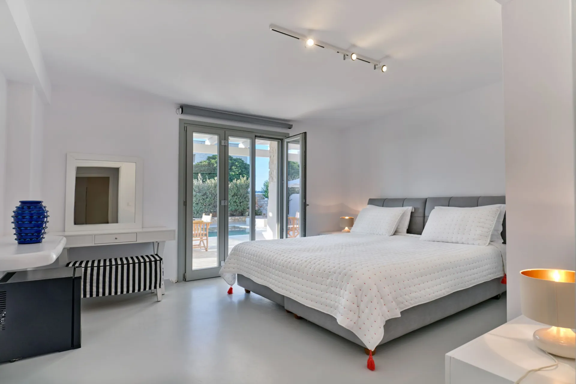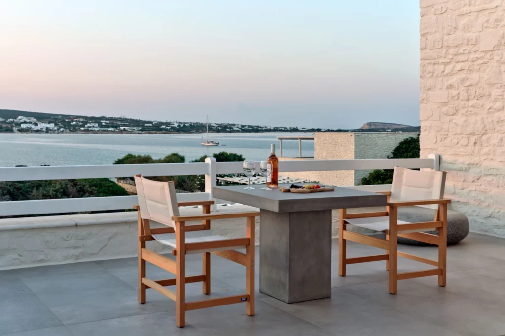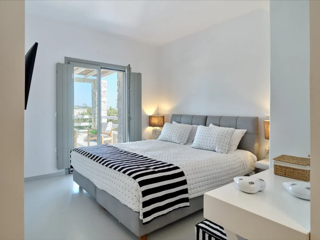 Just a short stroll away lies the golden Santa Maria Beach, home to the vibrant Santa Maria Beach Bar & Sports Club. And when evening falls, the charming town of Naoussa the island’s “place to be” is only a 10-minute drive away, offering elegant dining, boutique shopping, and lively nightlife.