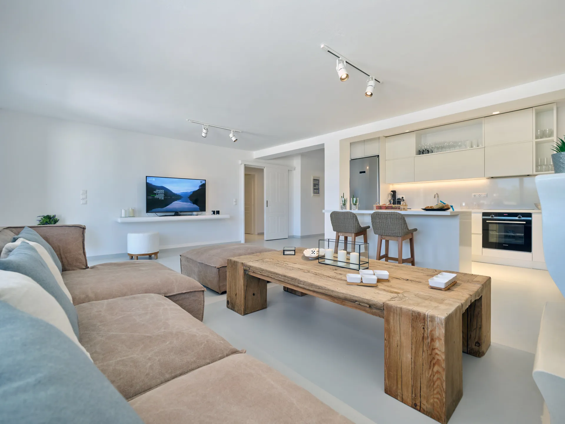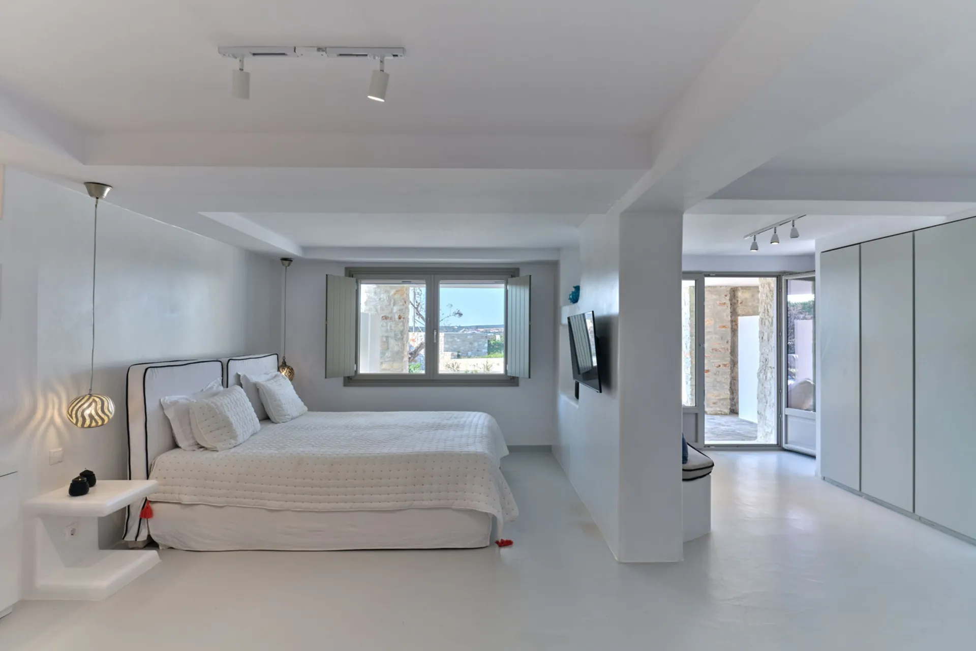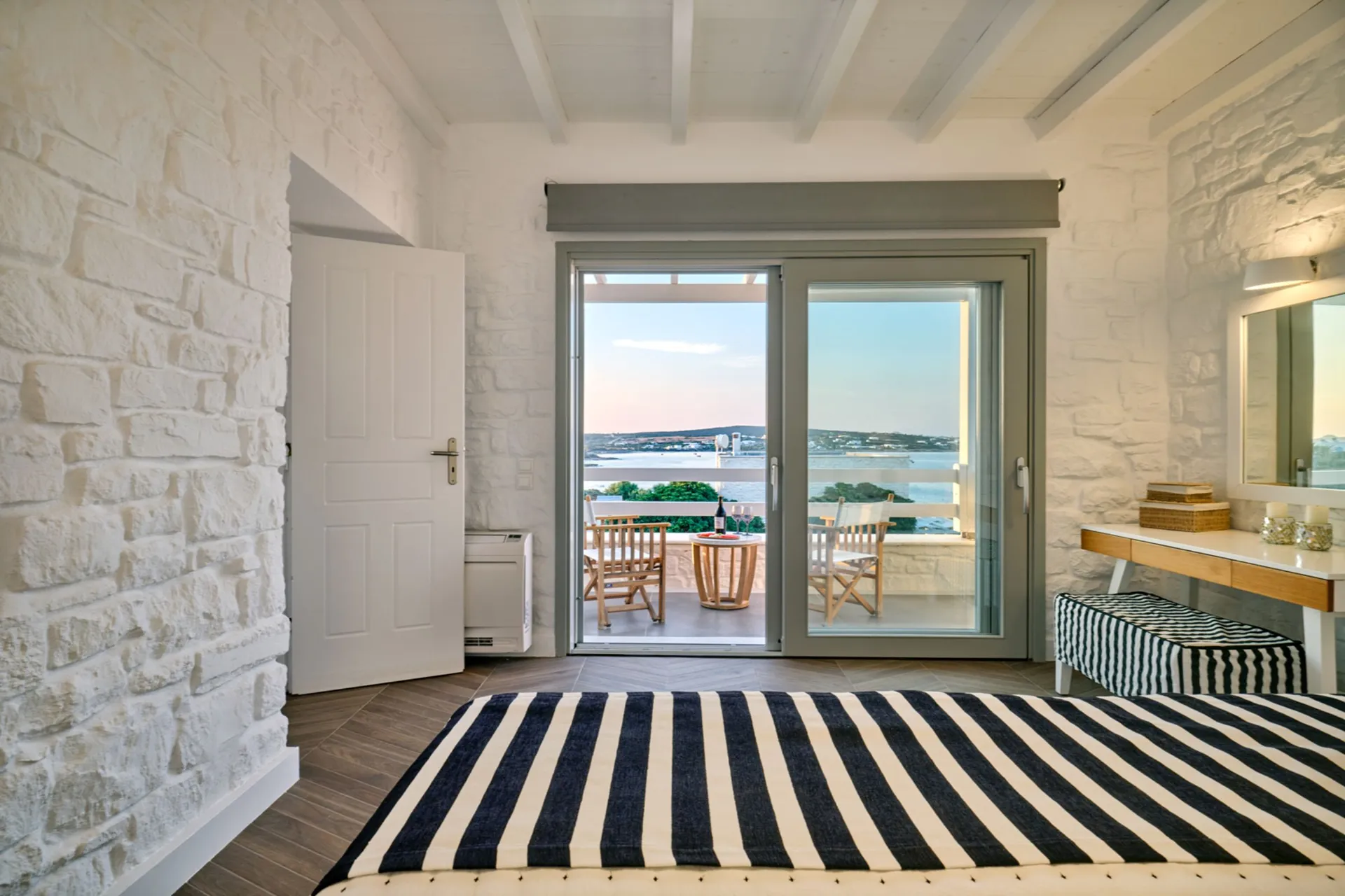 Just a short stroll away lies the golden Santa Maria Beach, home to the vibrant Santa Maria Beach Bar & Sports Club. And when evening falls, the charming town of Naoussa the island’s “place to be” is only a 10-minute drive away, offering elegant dining, boutique shopping, and lively nightlife.
