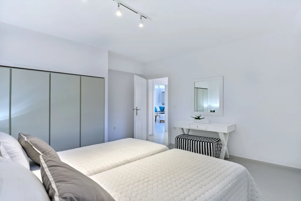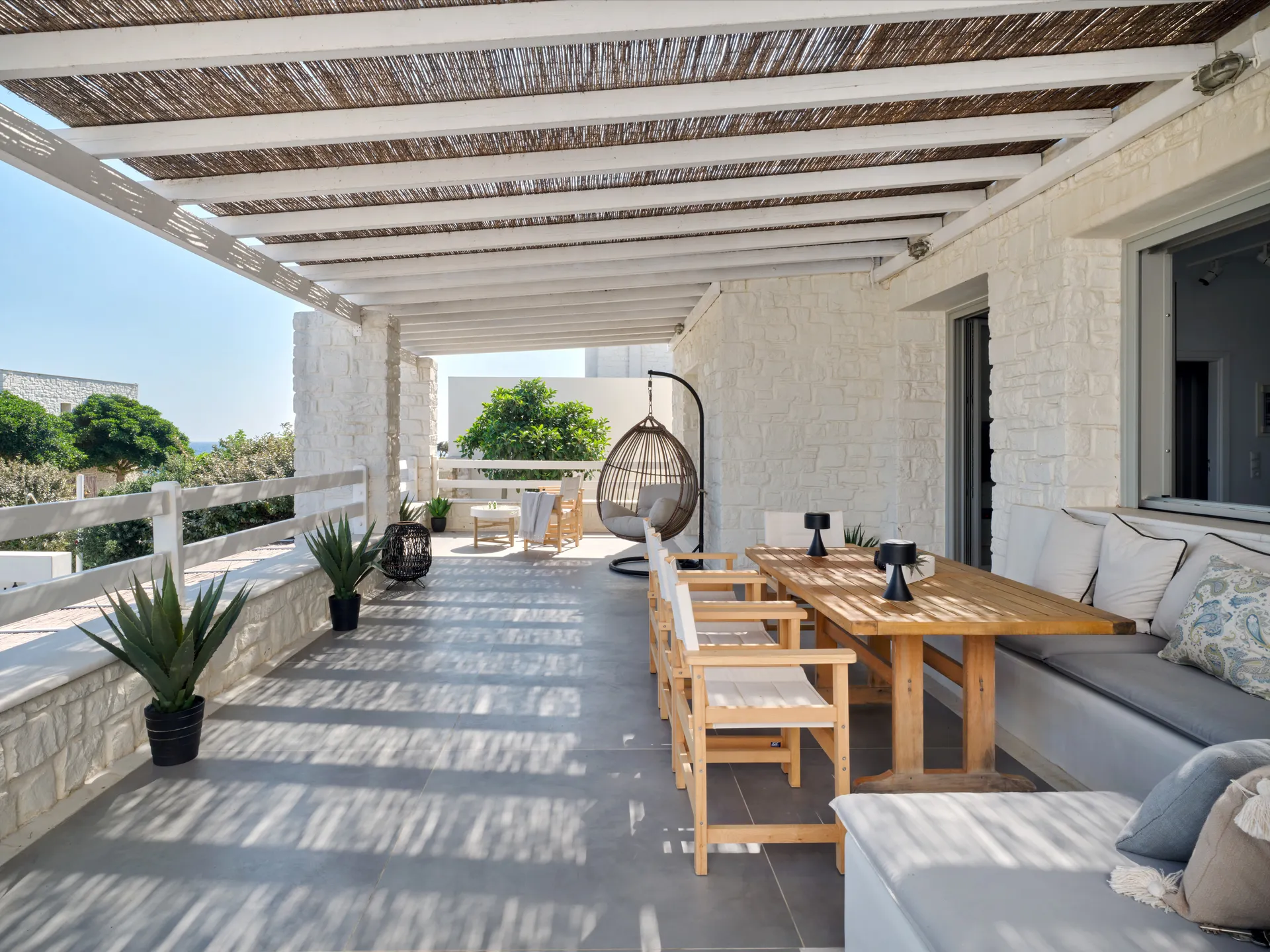 Surrounded by lush gardens, the villa includes a private pool, shaded terraces, and a BBQ area, providing the perfect combination of comfort, elegance, and outdoor living for a quintessential Paros summer escape.