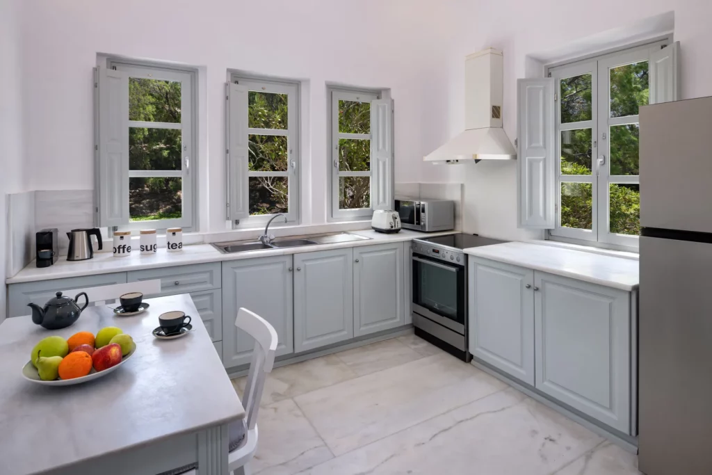 Accommodating up to 14 guests within 400 sq.m., this distinguished residence features 7 bedrooms and 7 bathrooms, offering the perfect synthesis of space, elegance, and privacy. Designed as a modern Cycladic sanctuary, it presents uninterrupted views of the volcano, refined interiors meeting the highest standards of comfort, and a private swimming pool. An exceptional retreat for those seeking serenity, generous living areas, and discreet luxury.