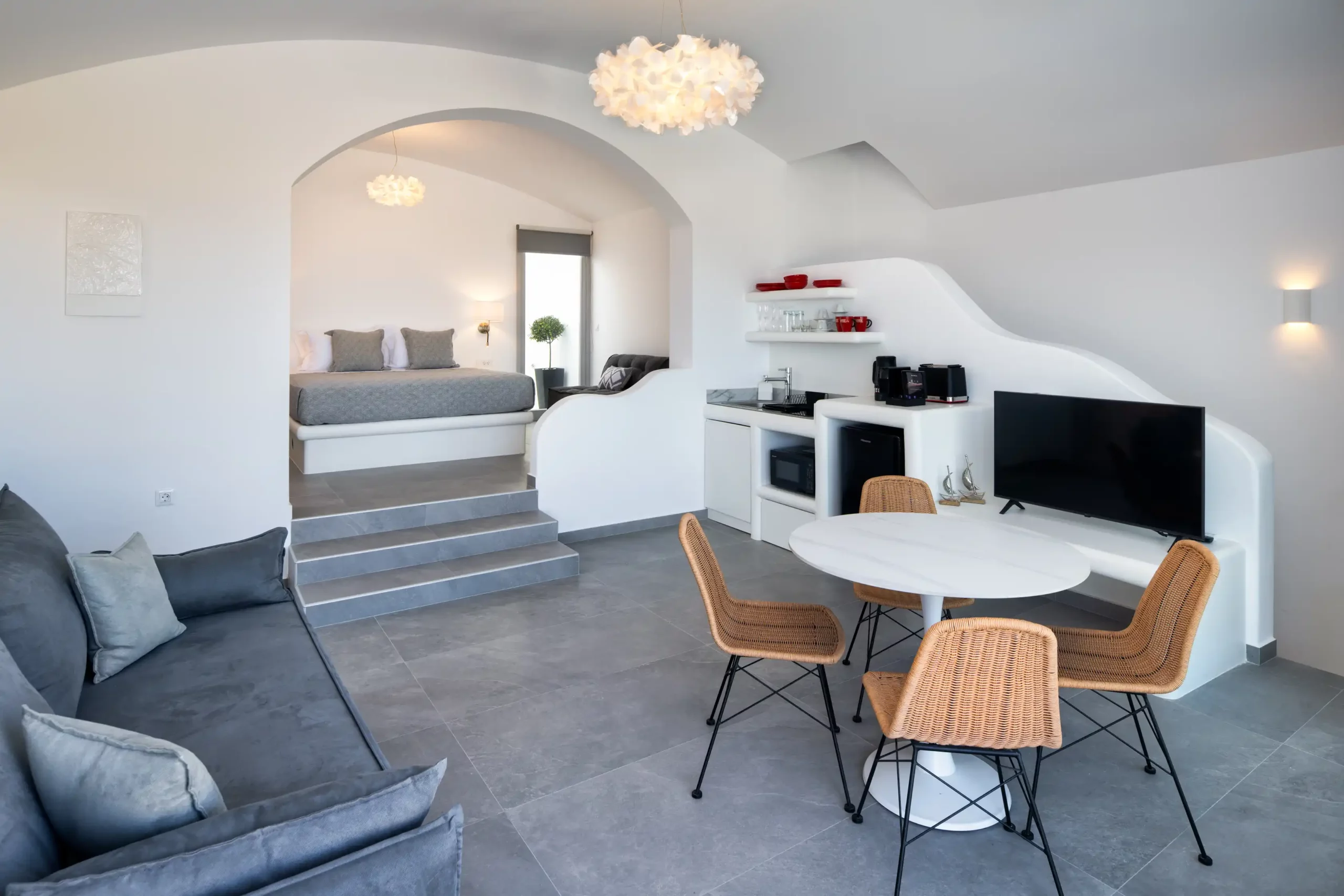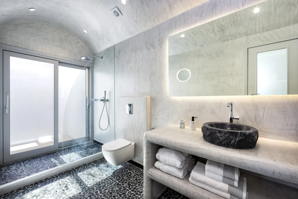 Four beautifully crafted, stone-built cave villas are set into Santorini’s tranquil hillside, carved directly from the mountain itself. Each villa offers a private pool with a unique submarine-style window, an expansive 100m² terrace, and elegant interiors inspired by authentic Cycladic design.